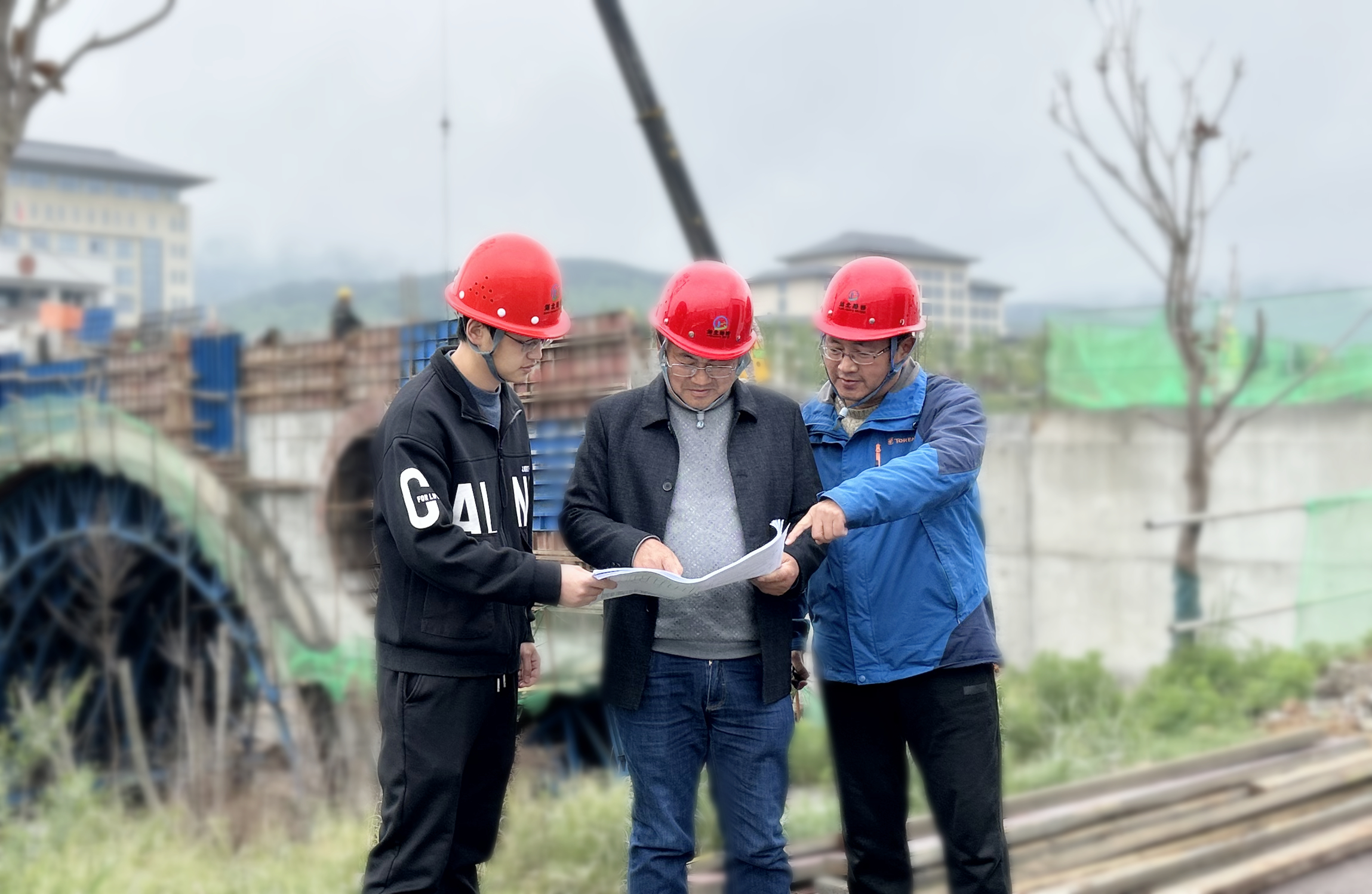 图:坚守在项目一线的徐明浩(中)
