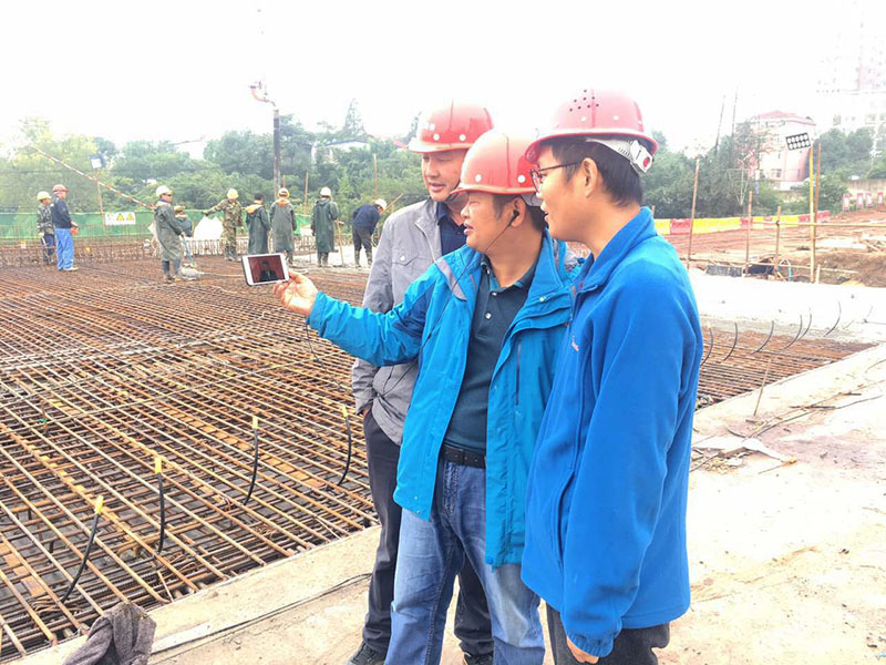黄冈三台河项目职工在施工现场利用手机观看十九大开幕式