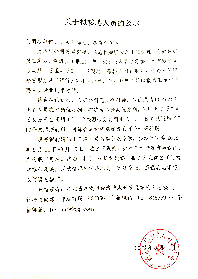 2018年华体会平台拟提拔任用中层管理人员任前公示通知