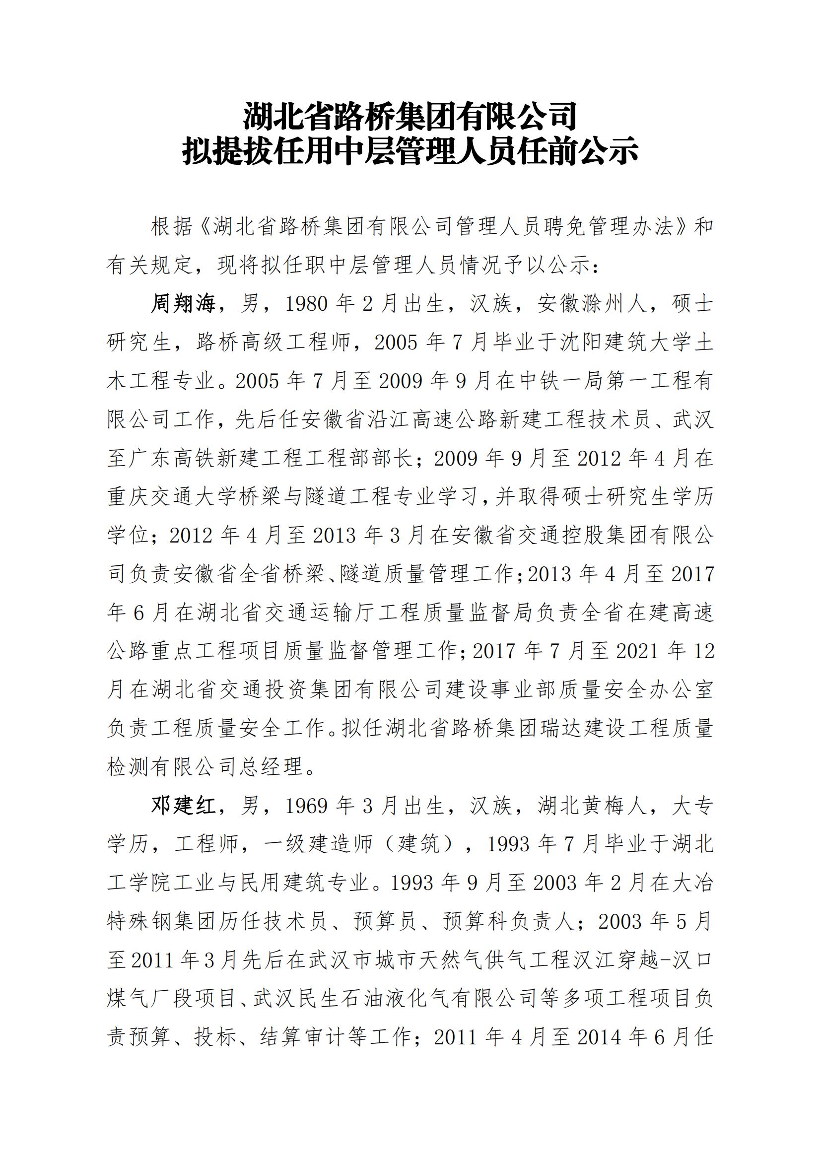 关于2022年湖北省路桥集团外聘人员专业技术考试成绩公布的通知