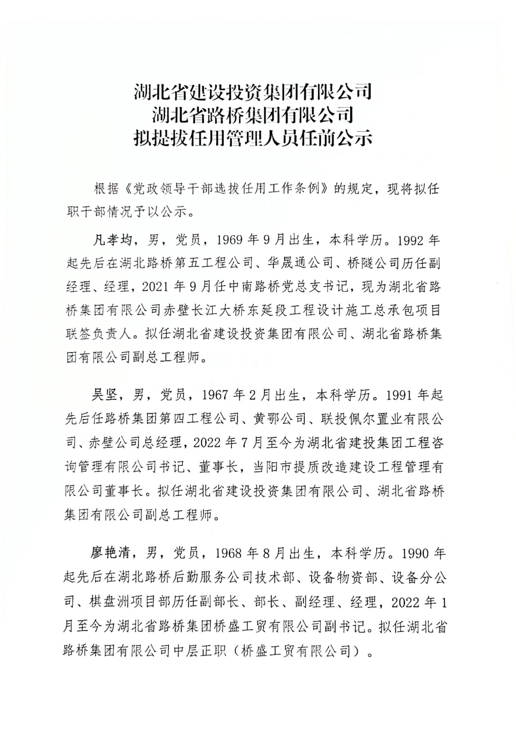 建投集团、湖北路桥管理岗位公开竞聘报名资格审查公示