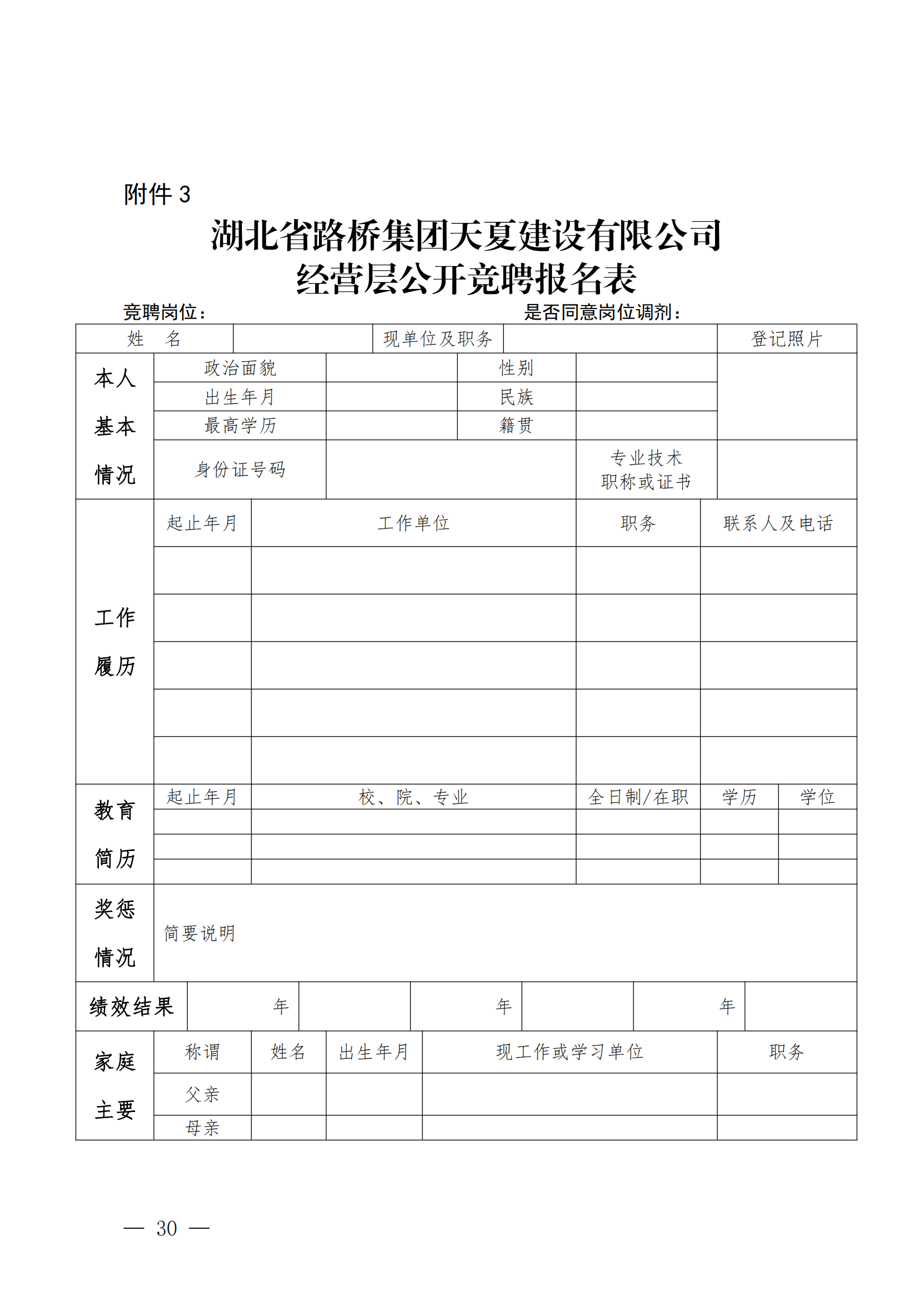 关于开展湖北省路桥集团天夏建设有限公司经营层团队公开竞聘的通知
