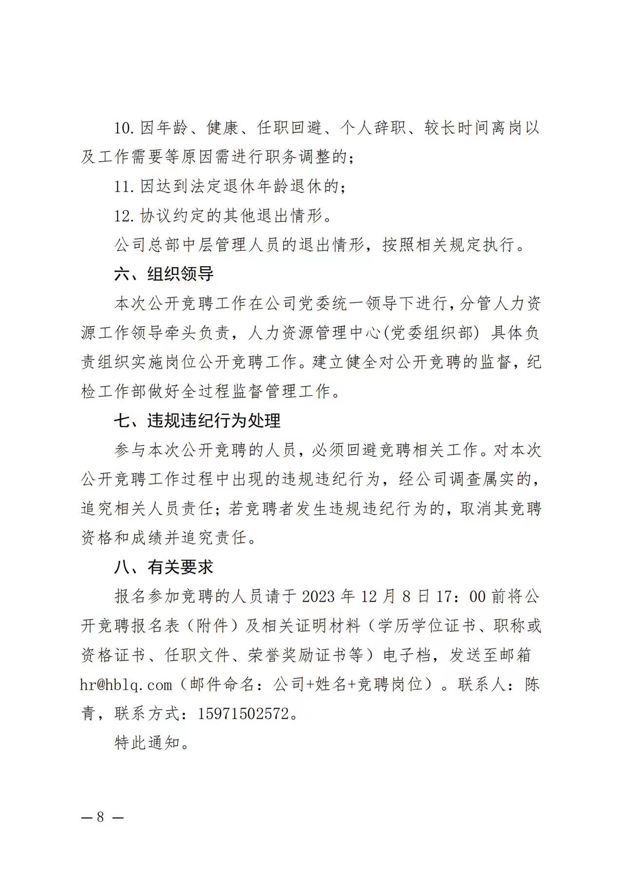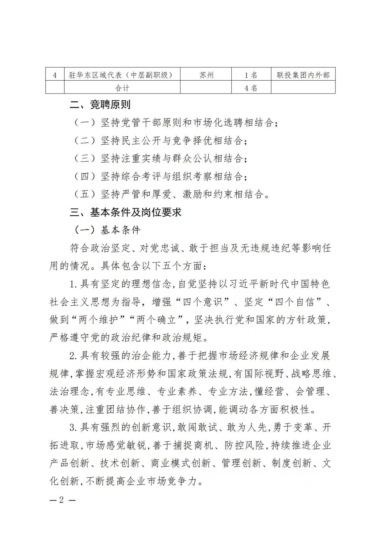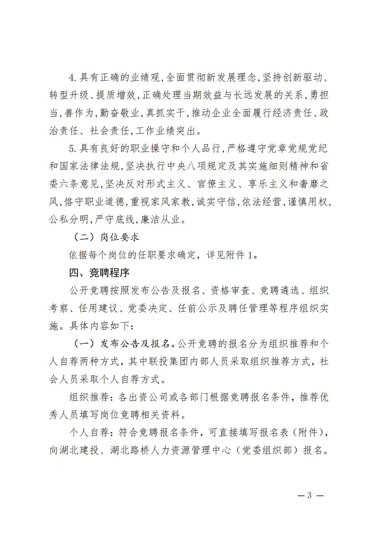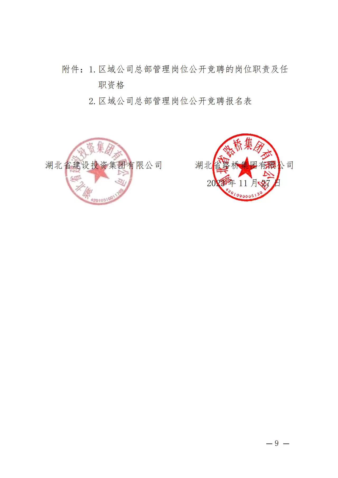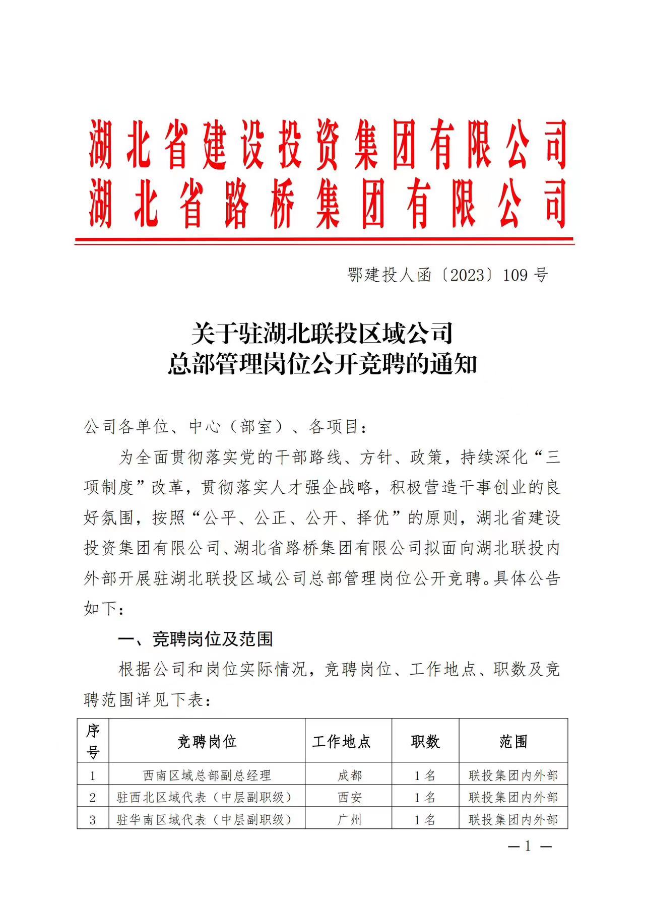 关于驻湖北联投区域公司总部管理岗位公开竞聘的通知