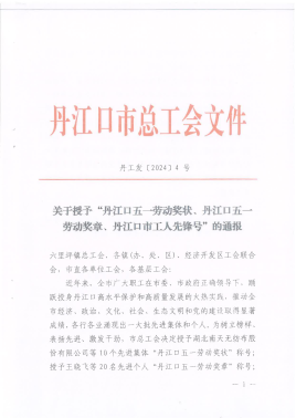 近日,丹江口市总工会发布关于授予“丹江口五一劳动奖状、丹江口五一劳动奖章、丹江口市工人先锋号”的通报,湖北路桥水都二桥项目被丹江口市总工会授予“丹江口市工人先锋号”荣誉称号。